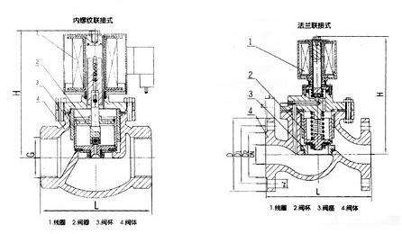 常開(kāi)電磁閥,線圈通電后,銜鐵在磁力作用下下移,推動(dòng)副閥閥塞下移,直到和副閥座壓緊,副閥關(guān)閉,由于主閥閥杯上下壓差趨于相等,主閥閥杯由磁力和自重壓緊緊密封面,閥門關(guān)閉。線圈斷電,磁力為零,銜鐵和副閥閥塞由彈簧作用上升,副閥打開(kāi),主閥閥杯內(nèi)介質(zhì)經(jīng)副閥流走,壓力下降,主閥閥杯由下下壓差作用向上升起,主閥打開(kāi),閥門開(kāi)啟。